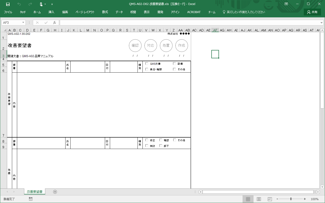 「ISO9001サンプル文書集」の「様式記入例がない」バージョンです。
