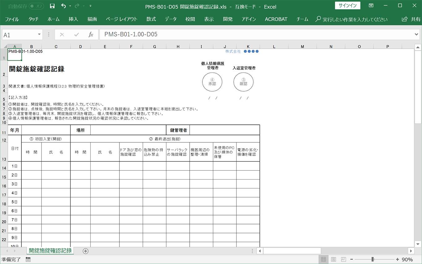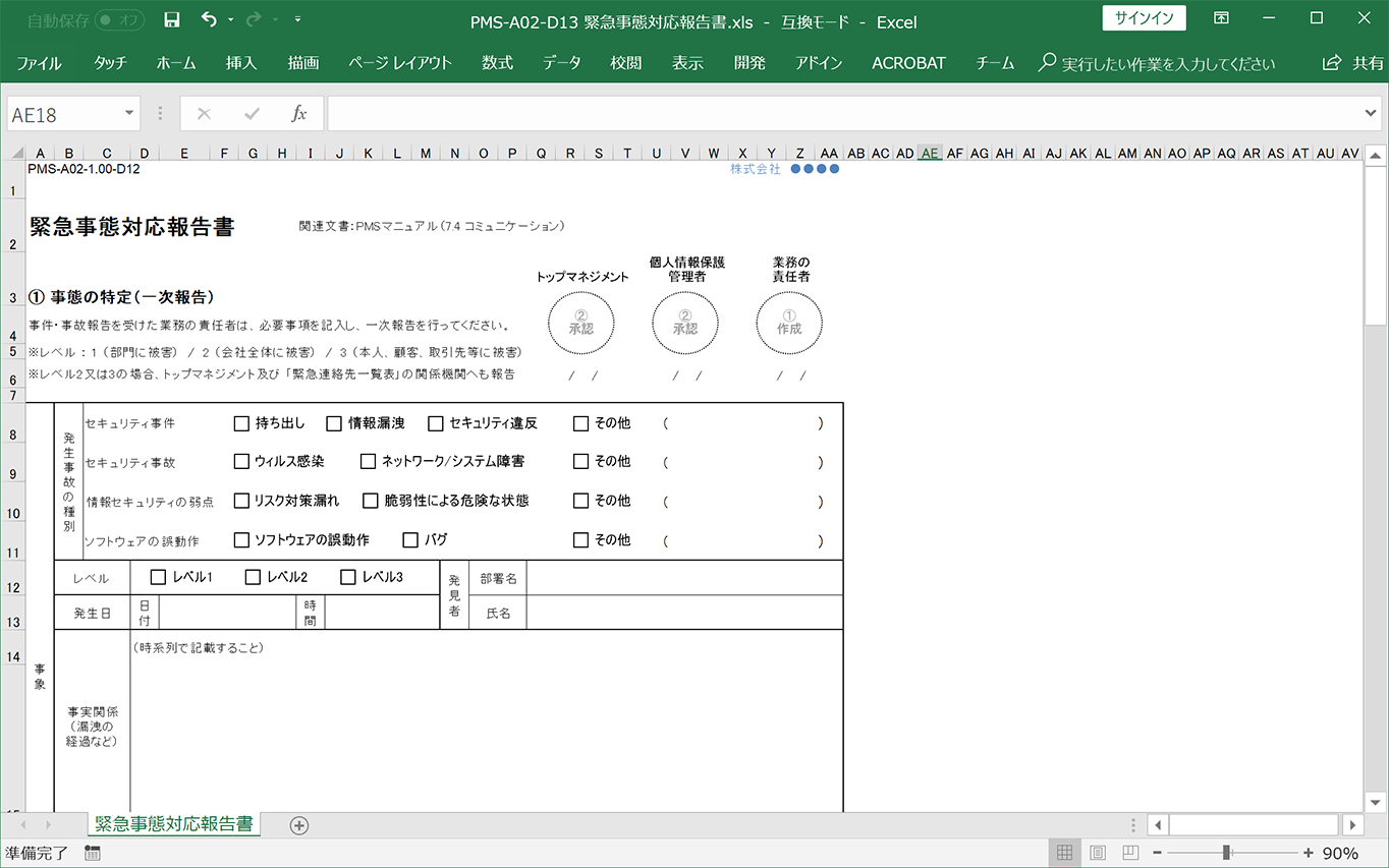 PMSマニュアルと各種規程のサンプル文書、個人情報保護方針書、様式集(記入例なし)の書式テンプレートが収録されています。